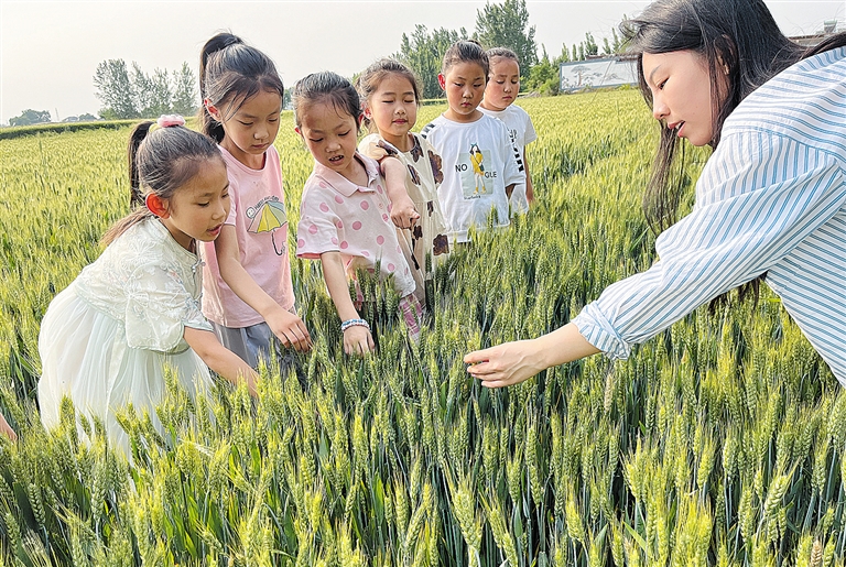 日前,蠡县蠡吾镇中心小学师生走进田间学习农作物知识。近年来,该校一直致力于二十四节气保护传承工作,以节气时序为轴构成“田间课堂+民俗节日+创意工坊”三位一体活动体系,努力为学生打造“可听、可视、可触”节气文化体验空间,营造沉浸式育人环境。2024年,该校成功立项《基于中华优秀传统文化二十四节气的小学思政育人路径研究》河北省教育科学“十四五”规划课题,进一步强化了节气文化在学校教育的整体推进作用,探索农村学校二十四节气文化与思政教育深度融合的创新路径。 张小超 摄