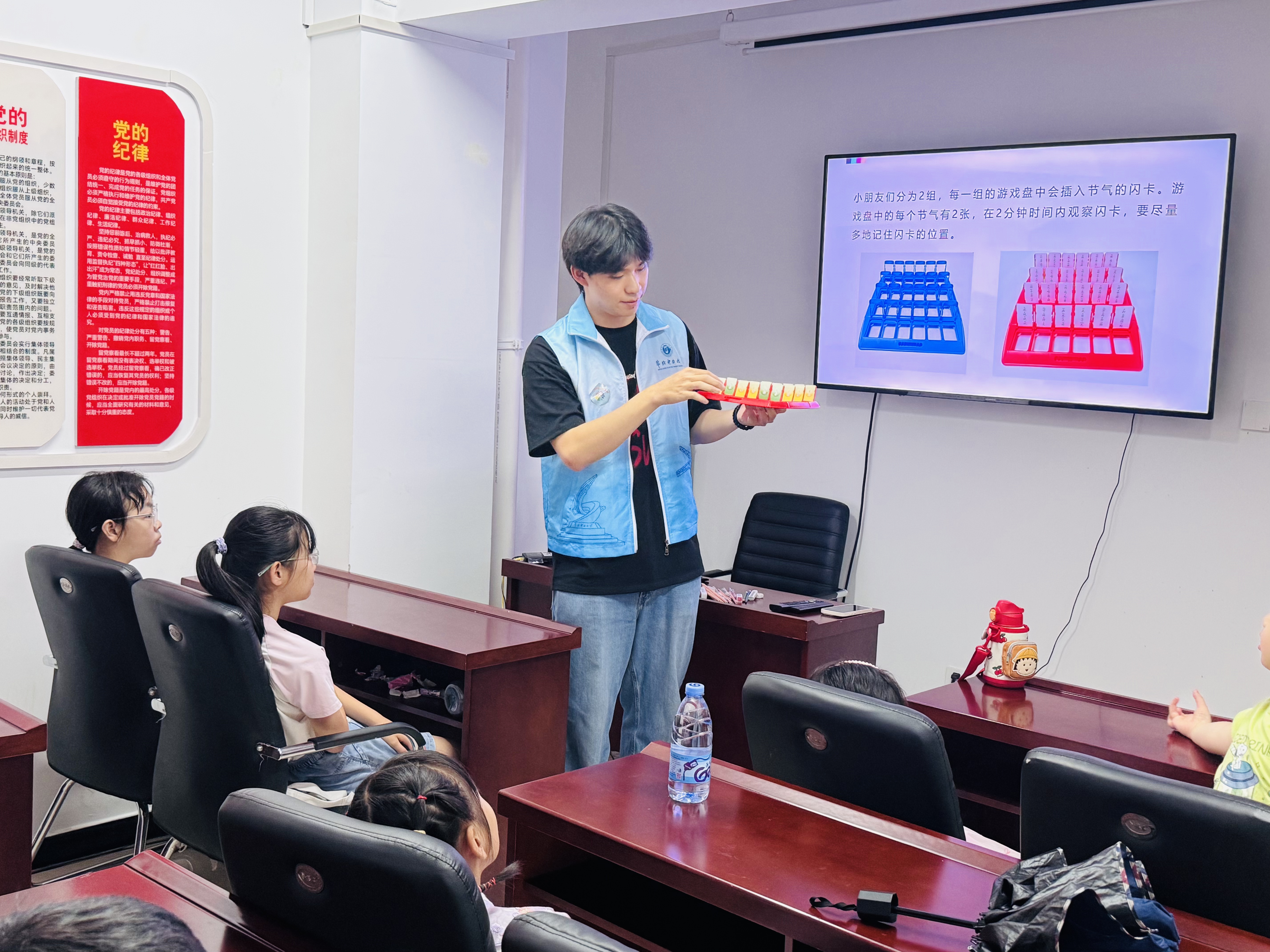 想为孩子做思想引领?大学生志愿者为孩子们讲述党旗、国旗的故事,通过钱学森、苏炳添的事迹解读社会主义核心价值观,让爱国情怀和远大理想扎根孩子心中;