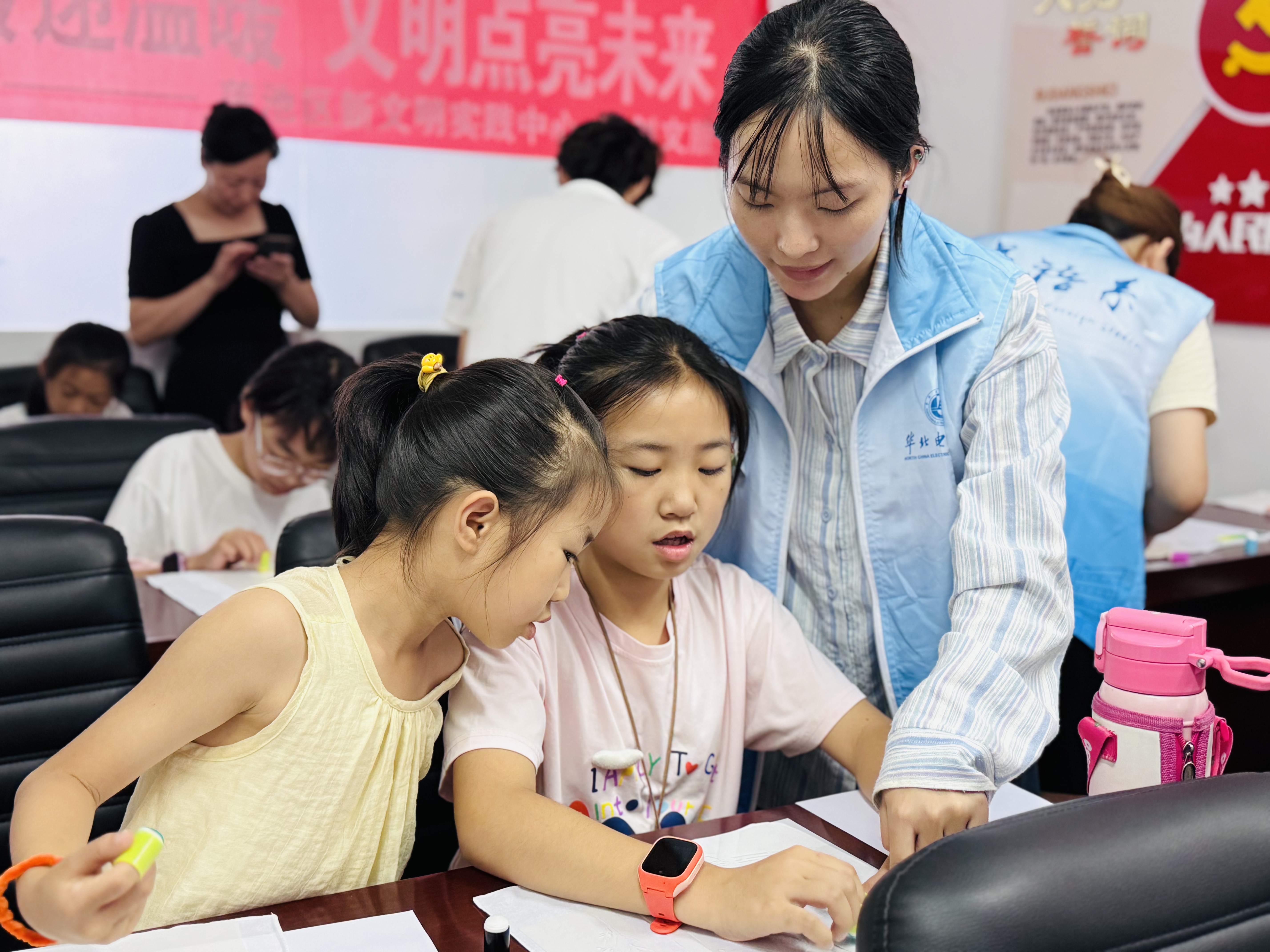 保定晚报讯(记者霍若雯 实习生曹佳韵 通讯员宋昱杰)进入暑期以来,莲池区清山公爵城社区联合华北电力大学组织开展多场“七彩假期”志愿服务活动,为孩子们编织充实又有意义的暑假生活。