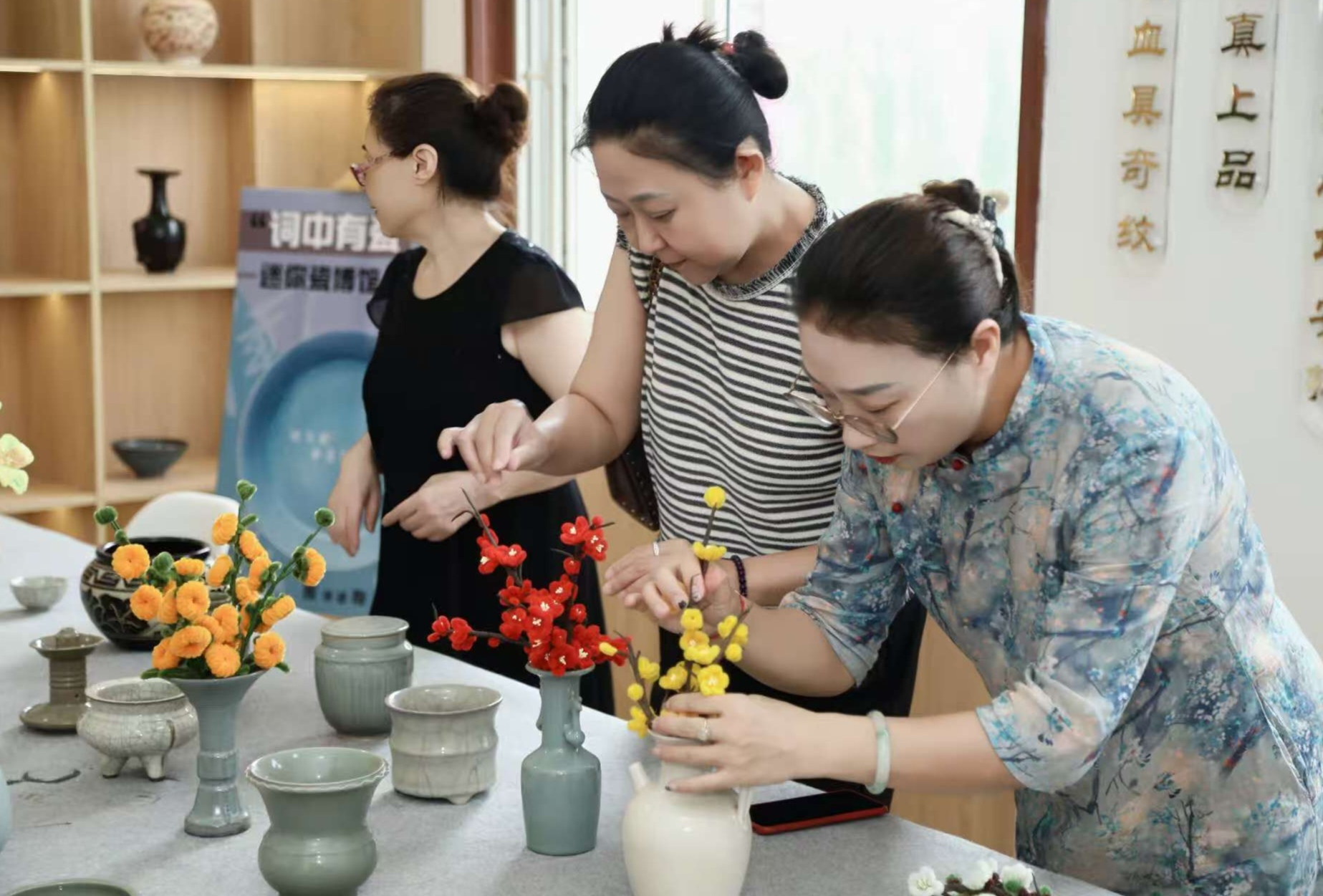 如今,这些居民手作绒花与定瓷一同在微型博物馆展出,两者一柔一刚、一雅一趣,相互映衬、和谐共生。相约三五好友前来参观,参与制作的居民总会骄傲地表示,亲手制作绒花不仅让自己掌握了一项传统技艺,更在参与过程中感受到传统文化的魅力,而博物馆的展出,更是让大家的劳动成果得到认可,进一步激发了传承传统文化的热情。