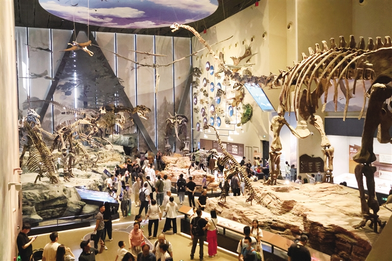 市民参观中国古动物馆恐龙展厅。 中国古动物馆(保定自然博物馆)供图