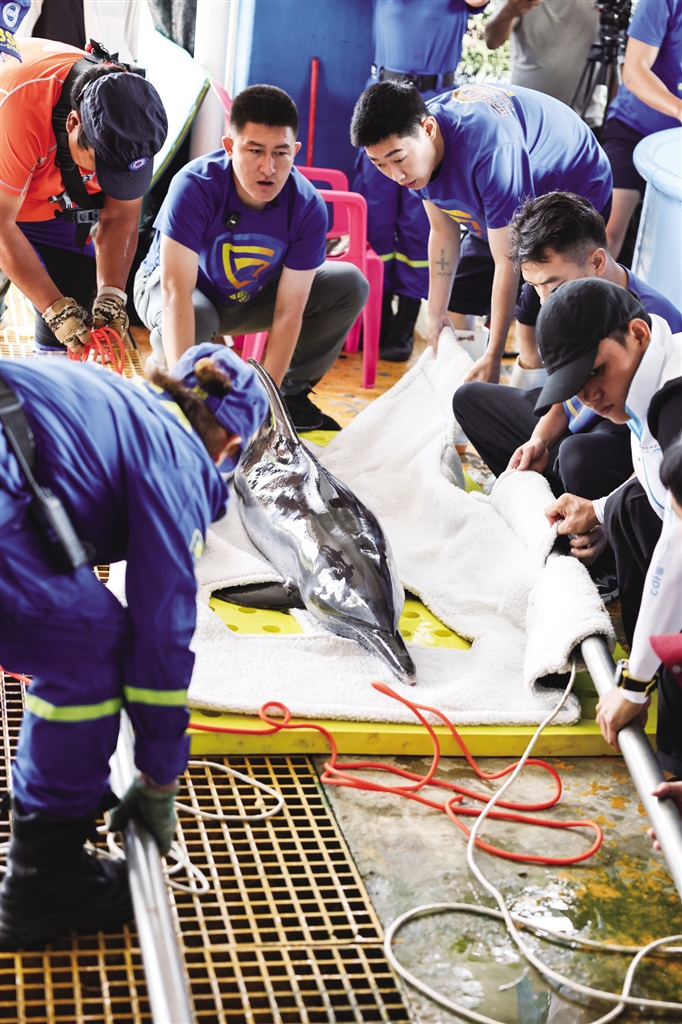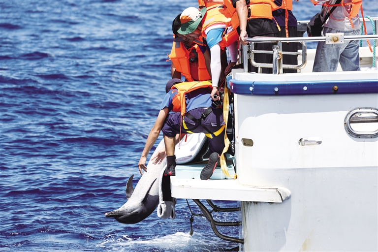 9月14日,在海南万宁获救的搁浅海豚“万万”成功回归大海。据了解,“万万”为雄性点斑原海豚,6月18日在万宁神州半岛附近海域意外搁浅,经过近三个月的治疗与康复护理,已恢复健康状态,经专家组讨论后,“万万”被运往万宁一处适合其生活的海域放归,顺利回归家园。