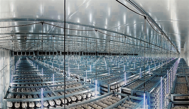 秋意渐浓,万物归敛,阜平县食用菌智速繁育中心内却一派繁忙。菇香淡淡,机器轰鸣,工人们在制棒车间有序地进行套袋、扎口、上架,叉车往来穿梭,勾勒出火热的生产图景。