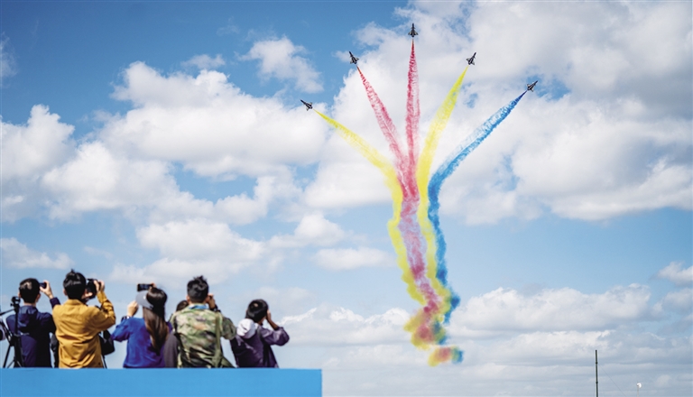 9月16日,人们在2025年空军航空开放活动和长春航空展预演上拍摄飞行表演。9月16日,2025年空军航空开放活动和长春航空展预演在吉林长春举行。2025年空军航空开放活动和长春航空展将于9月19日开幕。 新华社记者 唐成卓 摄