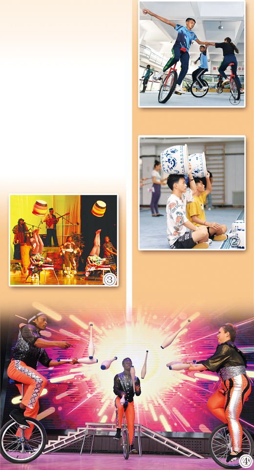 图④:外籍学员在河北吴桥杂技艺术学校进行毕业汇报演出。