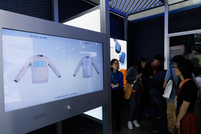 2025年9月5日,参观者在中国科技馆了解可穿戴电子织物展品。新华社记者 金立旺 摄