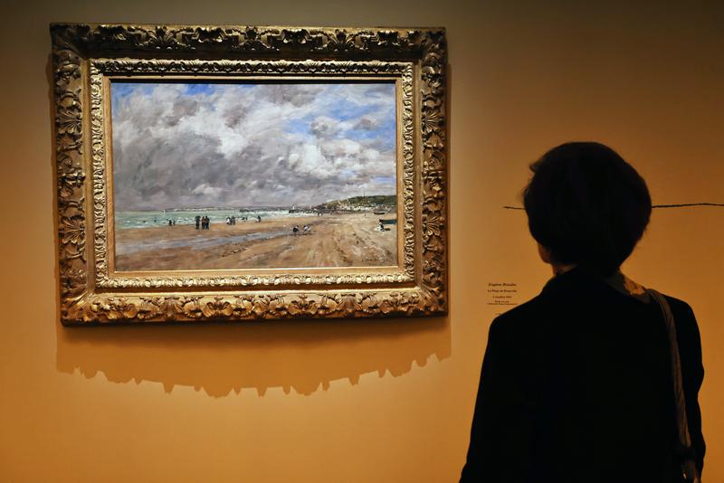 2025年4月8日,在法国巴黎玛摩丹美术馆,一名观众在《“印象派之父”——欧仁·布丹》特展的媒体预展上参观。新华社记者 高静 摄