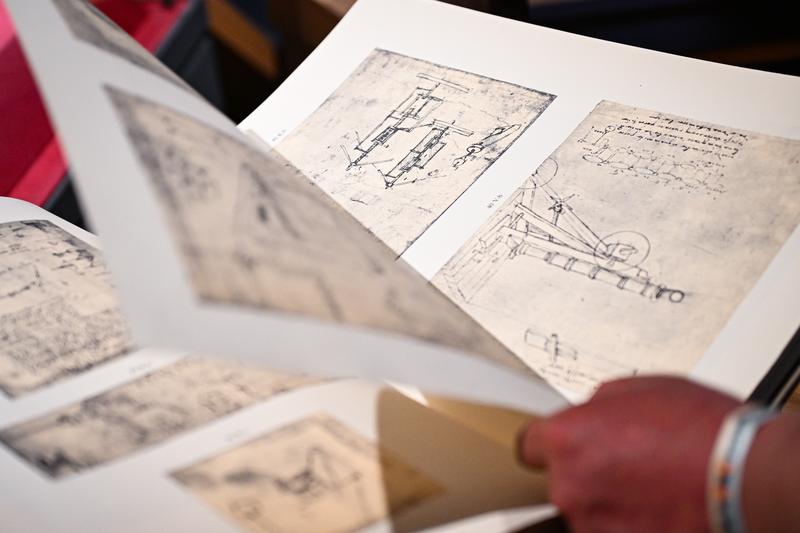 2025年6月5日在展览上拍摄的数字复原后的达·芬奇手稿《大西洋古抄本》。新华社记者 陈钟昊 摄
