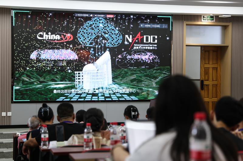 2025年7月31日,与会人员在首届全国天文公众科学大会活动现场观看天文科普视频。新华社记者 潘昱龙 摄