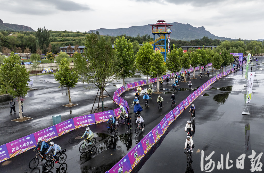 9月17日,自行车骑行爱好者在邢台市抱香谷骑行小镇骑行。河北日报记者田明摄