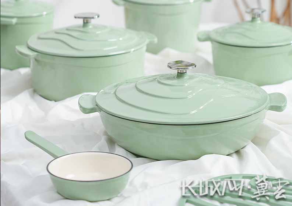 珐琅是涂烧在金属底坯表面上的无机玻璃瓷釉,珐琅锅具有导热快而均匀、保温好的优点。作为归禾器铸铁锅品牌创始人,李哲8年前选择竞争激烈的厨具市场,有着自己的眼光和自信。