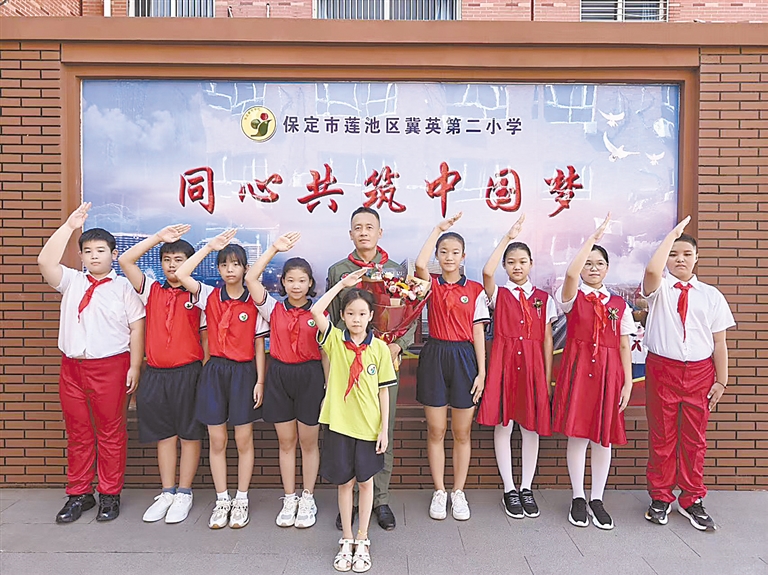 日前,保定冀英学校全体师生齐聚操场,举行以“烽火记忆照前路,秋风为序启新程”为主题的爱国主义教育活动,特邀直升机飞行员李文江分享体会感受。该校六年级学生朗诵了《星星之火永不灭》,激昂的集体宣誓和全场齐唱《强军战歌》更是将现场气氛推向高潮。冀英第二小学校长赵明涛表示,此次活动旨在通过沉浸式仪式教育,引导学生传承红色基因,赓续奋斗精神,厚植爱国情怀,铭记抗战历史,珍惜和平,奋发报国,以饱满昂扬的姿态迎接新的挑战。 耘溪 邢丹 报道