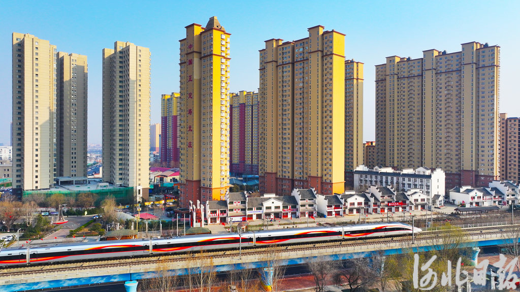 一列高铁从正定县塔元庄村旁驶过。(资料片)河北日报记者 史晟全摄
