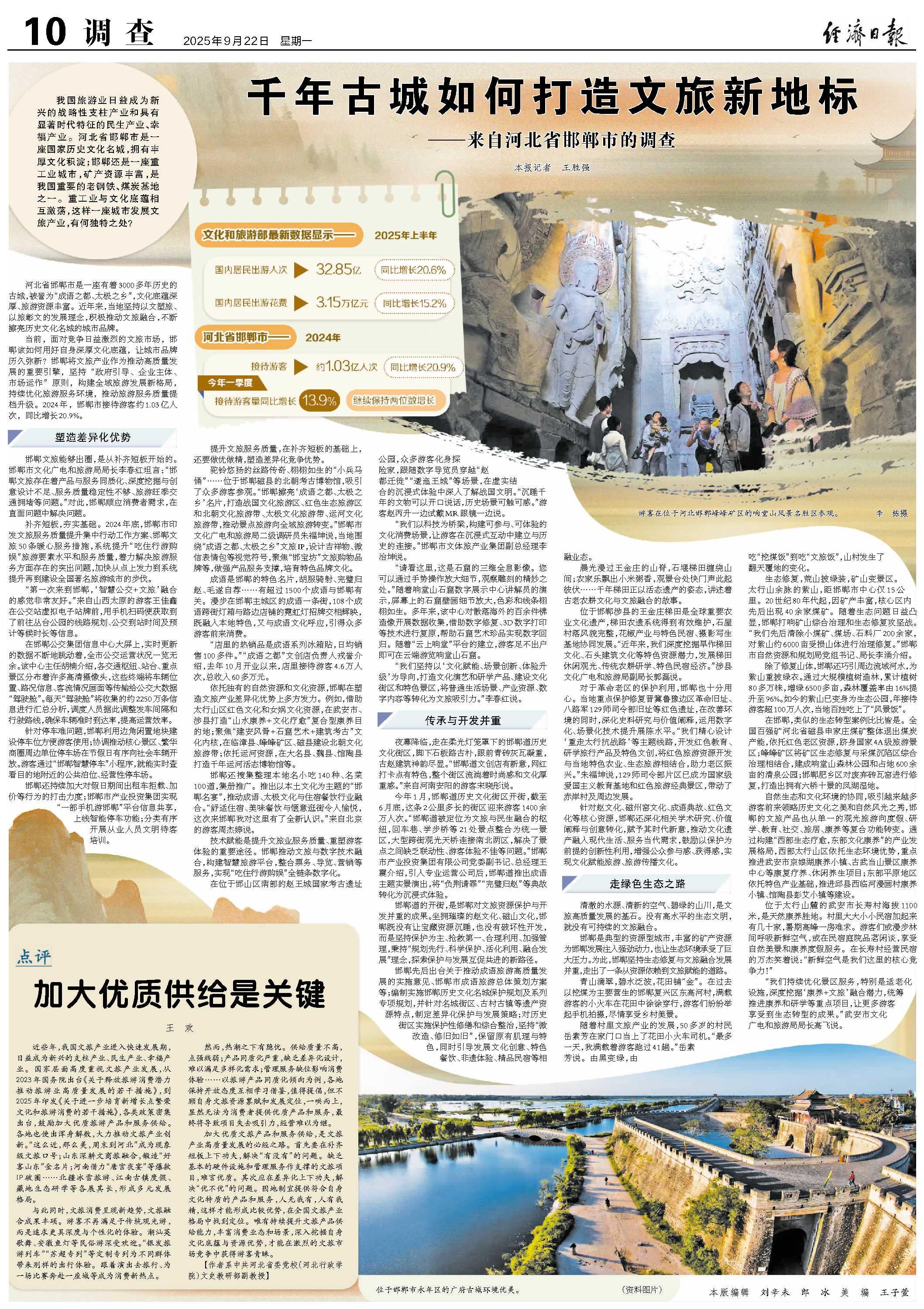 河北省邯郸市是一座有着3000多年历史的古城,被誉为“成语之都、太极之乡”,文化底蕴深厚、旅游资源丰富。近年来,当地坚持以文塑旅、以旅彰文的发展理念,积极推动文旅融合,不断擦亮历史文化名城的城市品牌。