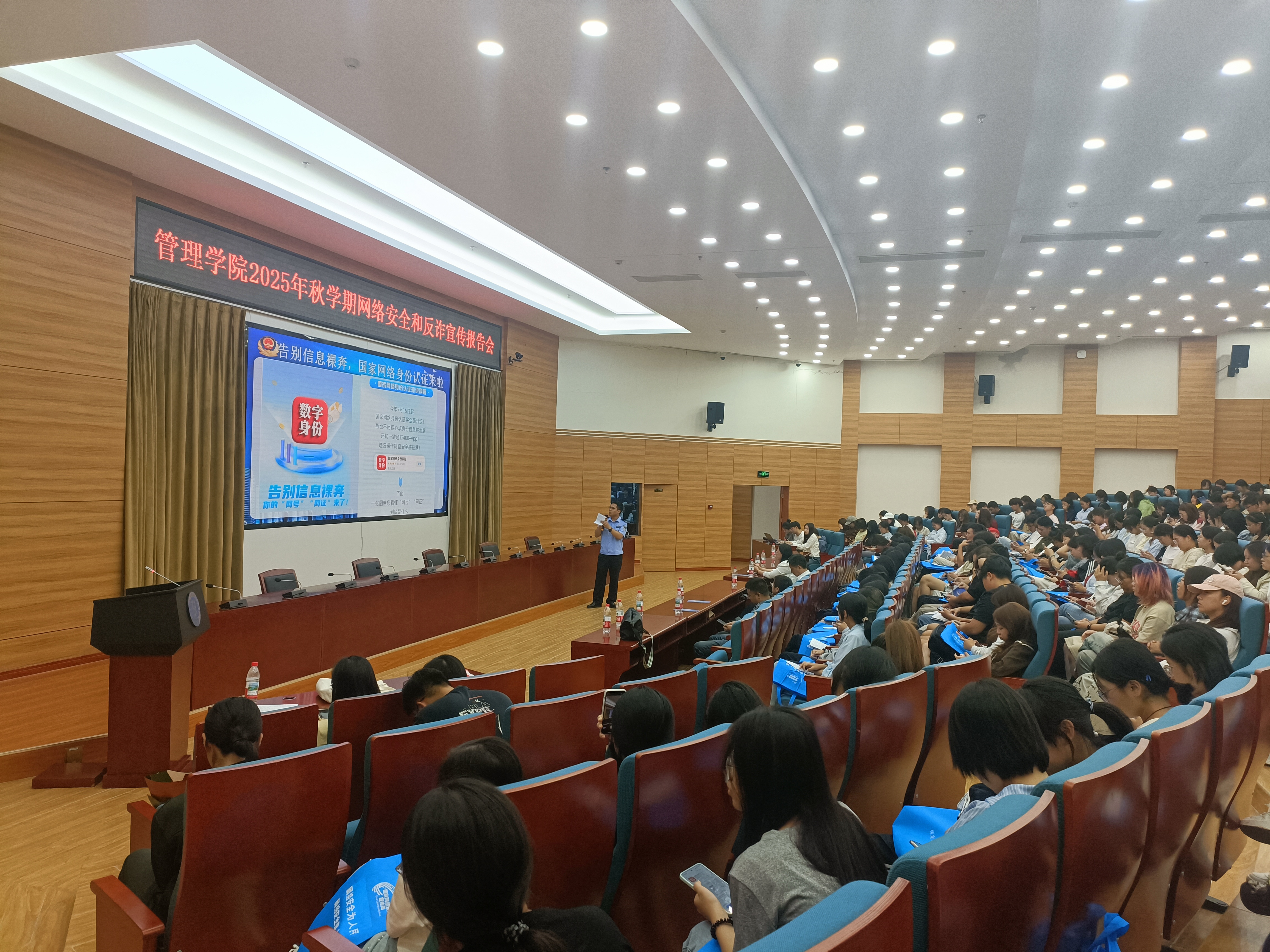 同样,在河北大学管理学院,保定市公安局网络安全保卫支队二大队大队长杜明月用脱口秀的形式,揭秘电信诈骗的“新剧本”。从“游戏皮肤陷阱”到“AI换脸诈骗”,案例贴近学生生活,又暗藏“防坑指南”,300多名师生在一个个巧妙设计的“包袱”中,接受安全警示教育,增强网络安全防范意识。