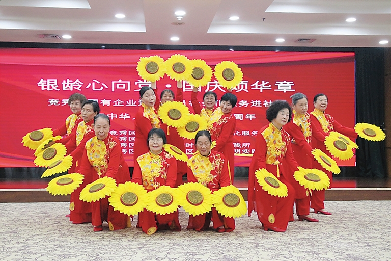 9月19日,竞秀区工信局、竞秀区国有企业退休人员社会化服务中心携手竞秀区戏剧家协会、先锋街道新时代文明实践所、百花新村社区新时代文明实践站共同开展“庆双节 展风采”主题文艺演出活动。《声声祝福你》《和谐中国》《故乡的月光》《大写的中国》等精彩文艺节目表达对祖国和家乡的美好祝福,充分展现国企退休职工老有所乐、老有所为的良好精神风貌。 姚蕾 摄