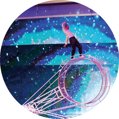 “江湖大剧院的舞台可升降、旋转、倾斜、移动,LED大屏也可前后、左右、上下移动和开合。”吴桥杂技大世界旅游有限公司董事长牟双双介绍,剧院先进的声光电系统,可以打造出浩瀚宇宙、运河盛景、狂风巨浪等具有沉浸感的视听空间,传统锣鼓与现代电子音乐融合,既保留了“撂地”卖艺的市井烟火气,又赋予表演恢宏的史诗感。