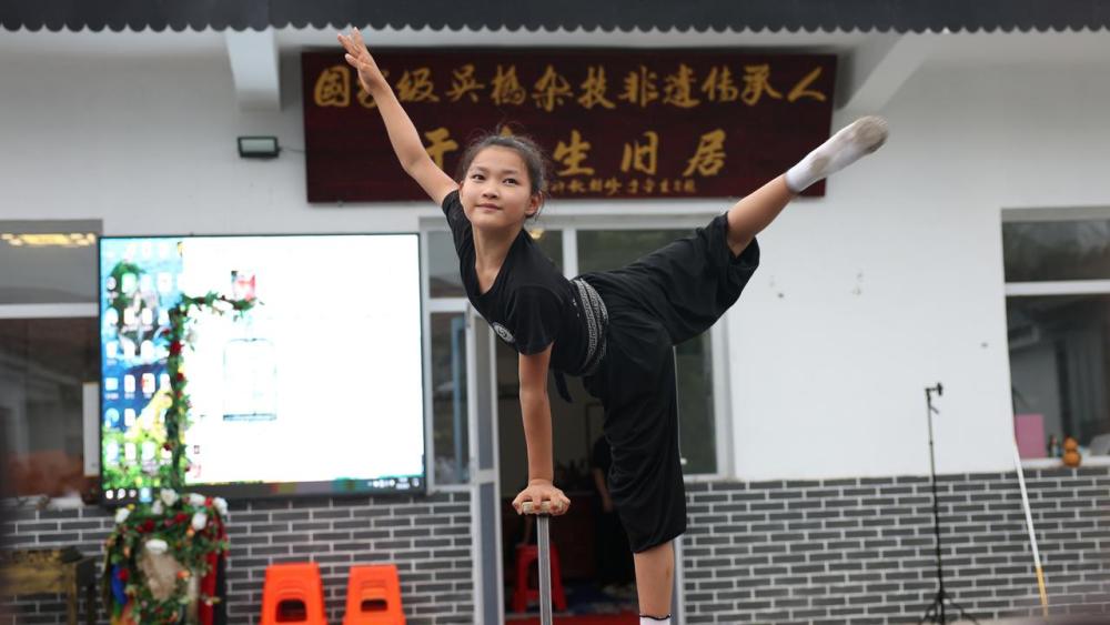 单手倒立、近景魔术……在吴桥县于集镇于金生杂技小院,杂技艺人们接连亮出拿手绝活,引得围观群众连连喝彩,不少村民循着锣鼓声赶来观看。