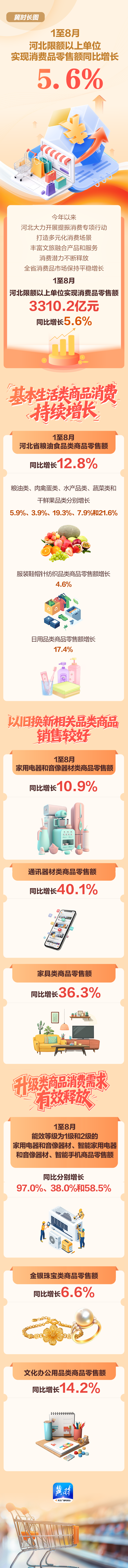 冀时长图丨1至8月河北限额以上单位实现消费品零售额同比增长5.6%