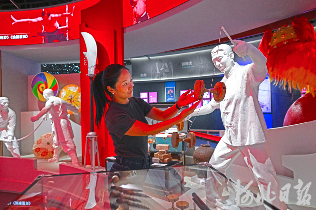 9月22日,工作人员在吴桥杂技博物馆查看展品陈列情况。河北日报记者张昊摄