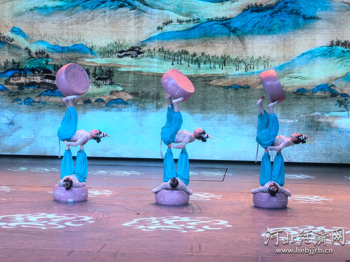 吴桥杂技大世界“江湖大剧院”里,杂技演员进行蹬鼓表演。河北经济日报记者 吴新光 摄