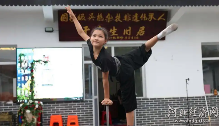 在吴桥县于集镇于东村于金生杂技小院,73岁的老艺人于金生正带着徒弟们练习单手倒立和近景魔术。围观的村民里三层外三层,不时爆发出阵阵喝彩。