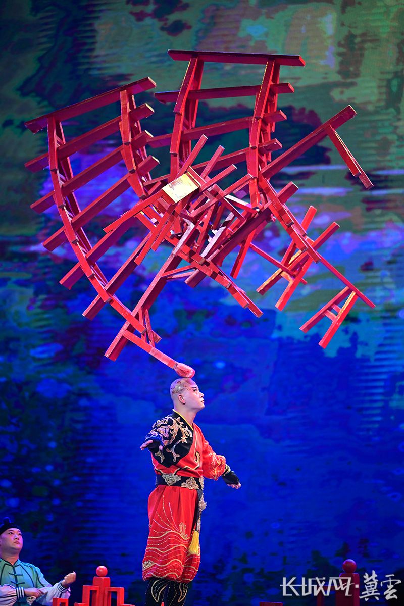 安徽省杂技团表演《顶板凳》。长城网·冀云客户端记者 许付磊 摄