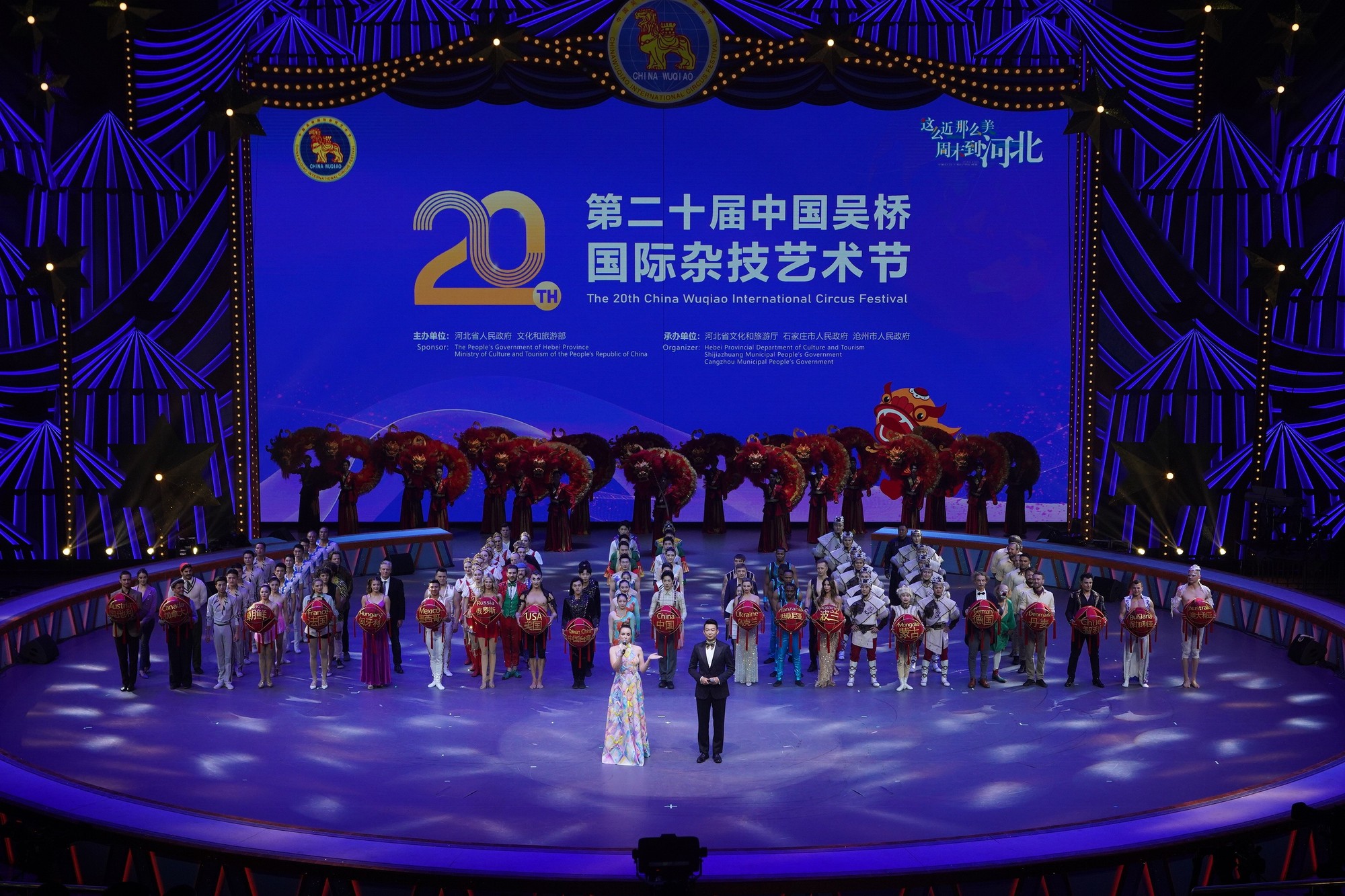 9月28日晚,河北沧州市的吴桥东方杂技城内灯光璀璨,在悠扬的音乐声中,来自世界各地的杂技艺术家为嘉宾和观众奉上精彩的演出《梦·吴桥》。这标志着第二十届中国吴桥国际杂技艺术节正式拉开帷幕,也是杂技节创办38年来主体活动首次真正落地“杂技之乡”吴桥。