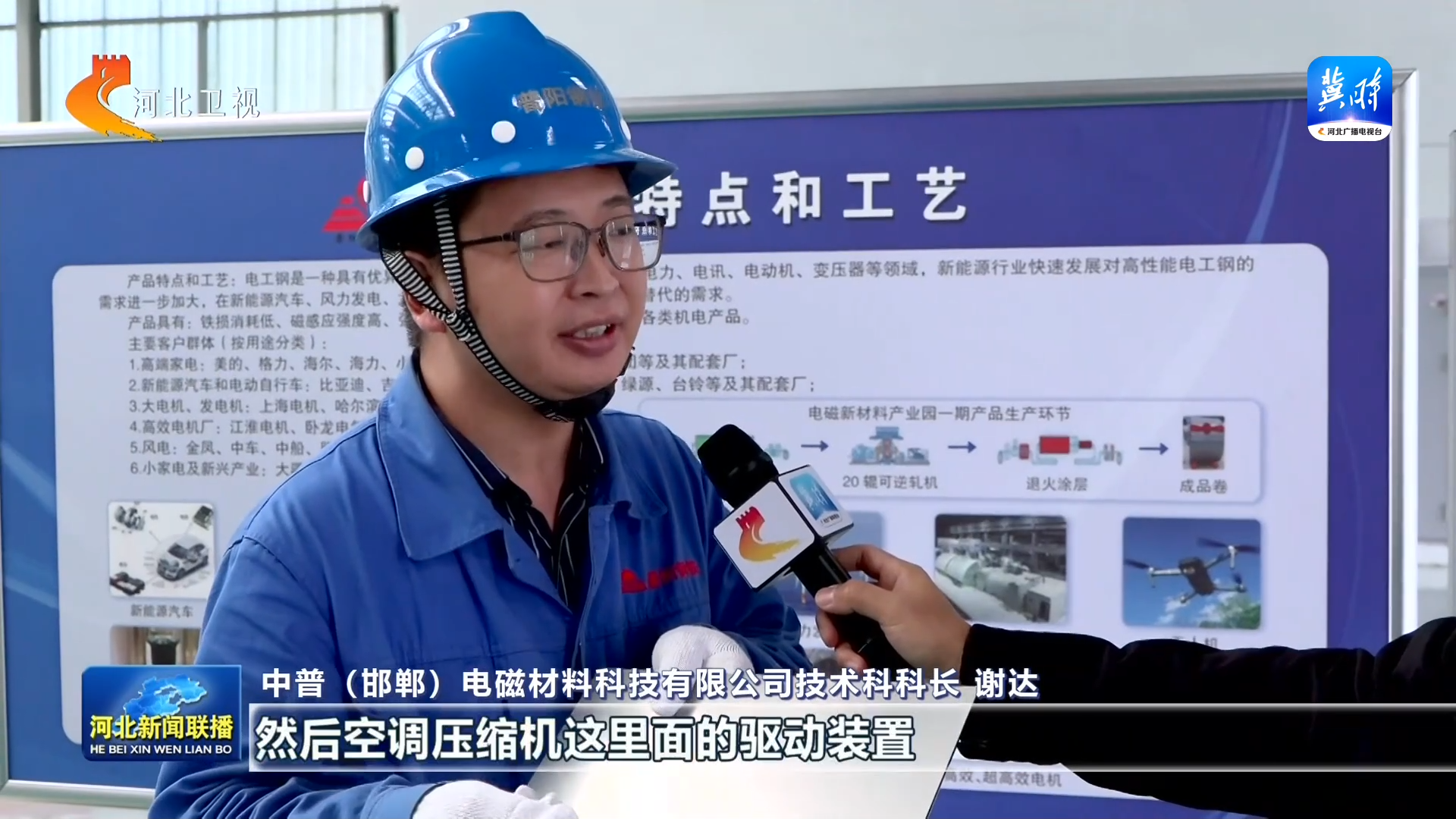 我现在是在中普(邯郸)电磁材料科技有限公司,目前,它的一期项目已于今年4月份投产,截至8月底,累计生产无取向电工钢11万吨。