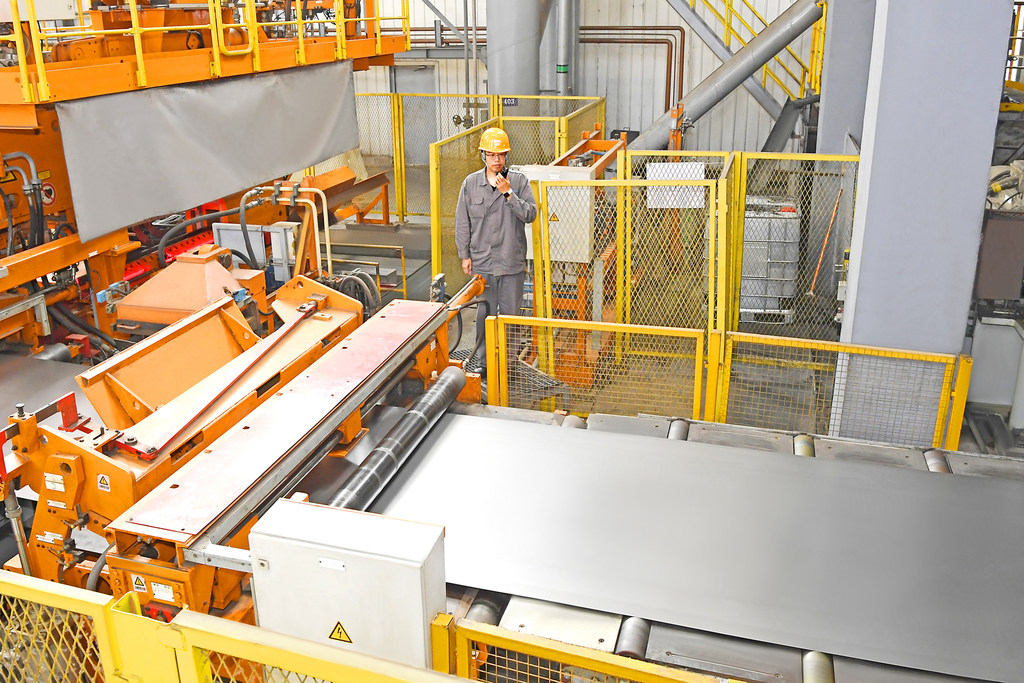 9月1日,河钢集团唐钢公司高强汽车板有限公司职工在检查汽车板产品表面质量。赵辉摄