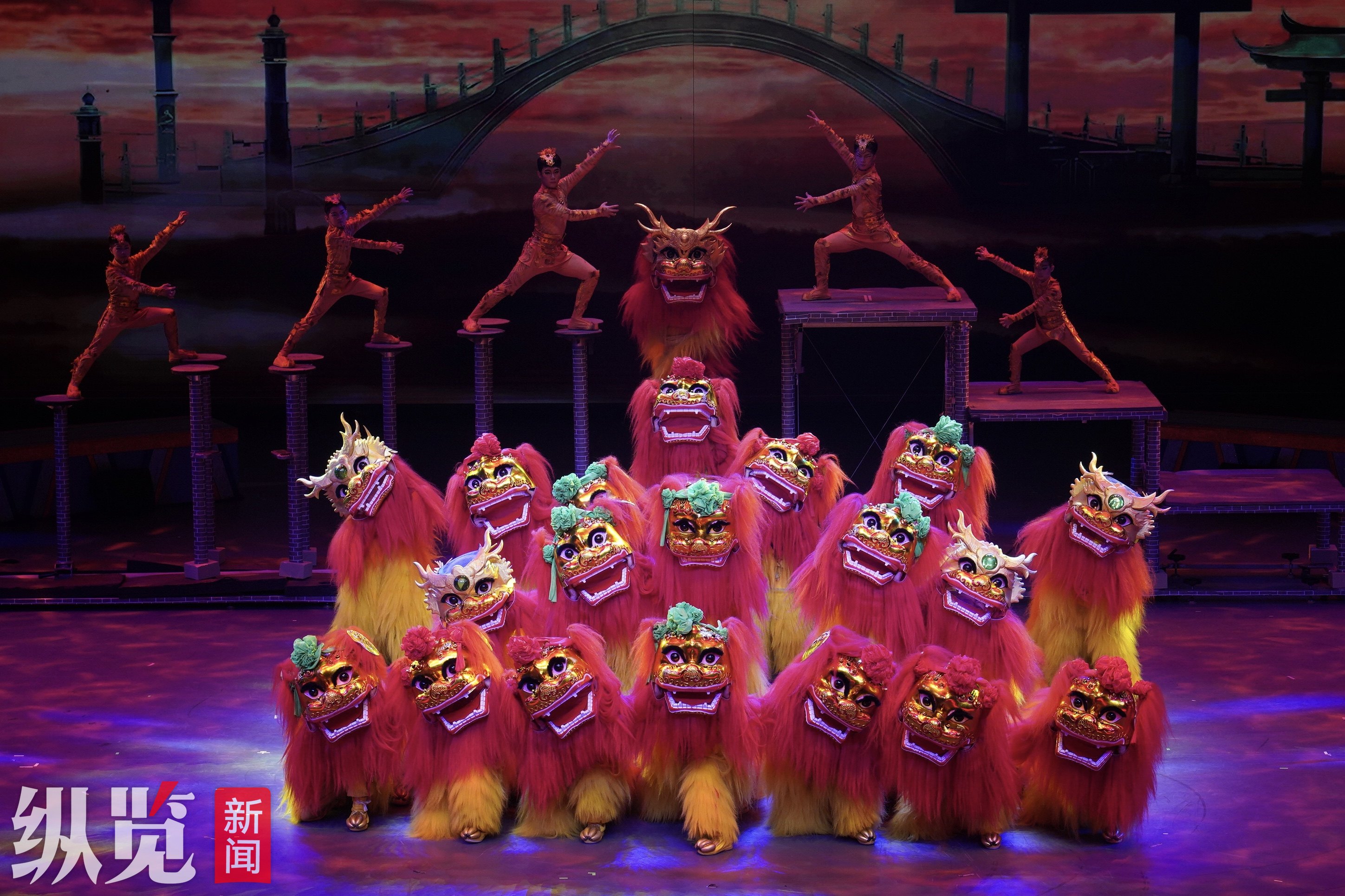 铜锣声响,舞狮登场。河北省杂技团和沧州杂技团带来的《祥狮跃九州》将现场氛围推向高潮,节目通过一系列动作将狮子的灵动机敏以及喜悦、激昂、无畏等情感具象化地呈现在观众眼前,小狮在狮头上连续前后空翻、前空翻接双飞燕再接前空翻的连续动作、狮子后空翻夹杆、五对狮子踩球过板等高难度表演,引得观众连连喝彩。