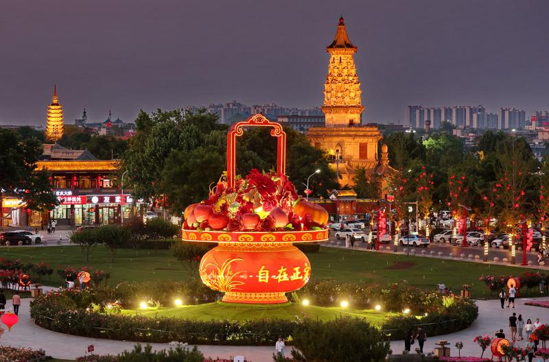 2025年5月14日拍摄的正定古城夜景。新华社记者 杨世尧 摄