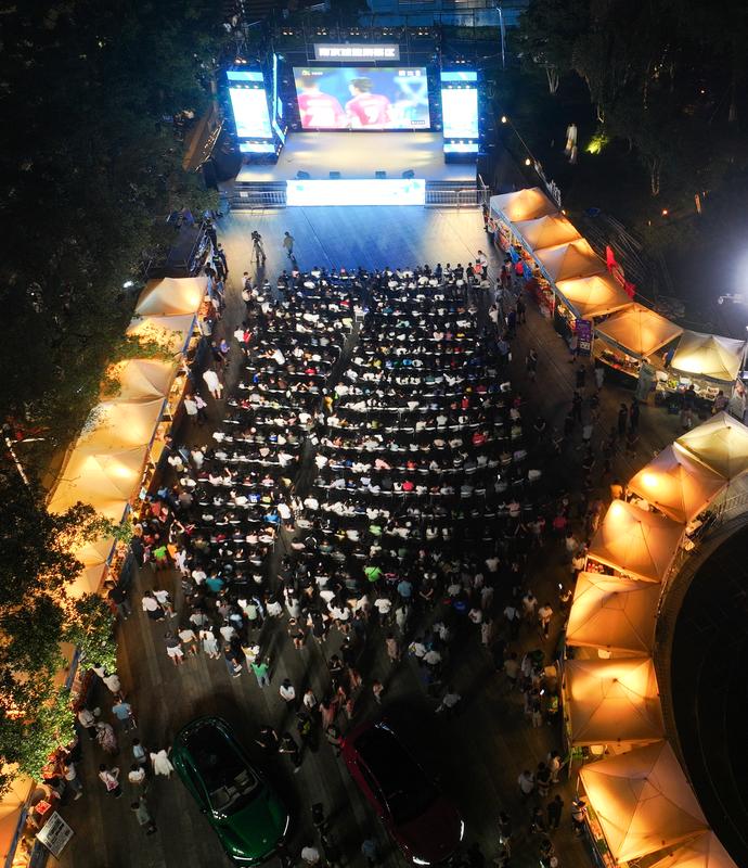 2025年8月17日,球迷在观看“苏超”比赛(无人机照片)。新华社记者 季春鹏 摄