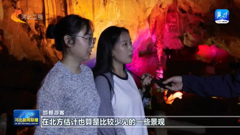 这里是邢台市临城县的崆山白云洞,在我身后大家可以看到,自然形成的钟乳石姿态万千、色彩斑斓、晶莹剔透,伴随着潺潺的溪流,将千百年来的时空轮转,向每一位游客娓娓道来。