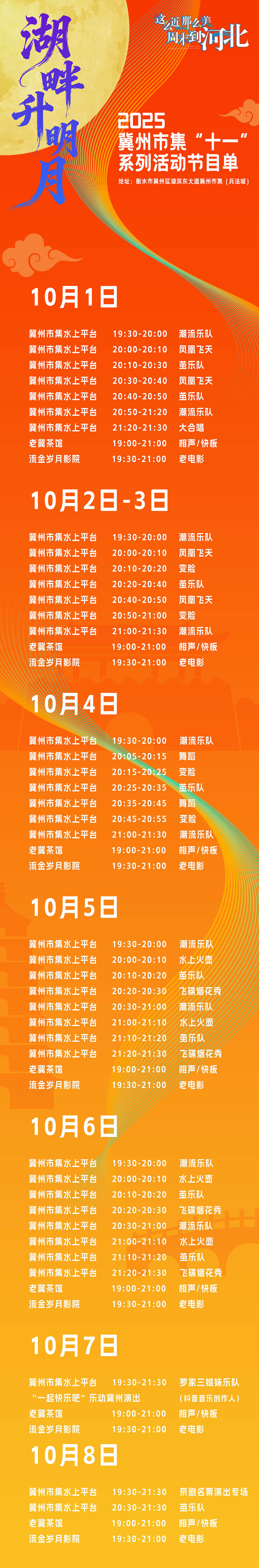 10月1日至8日每天不定时2-3场