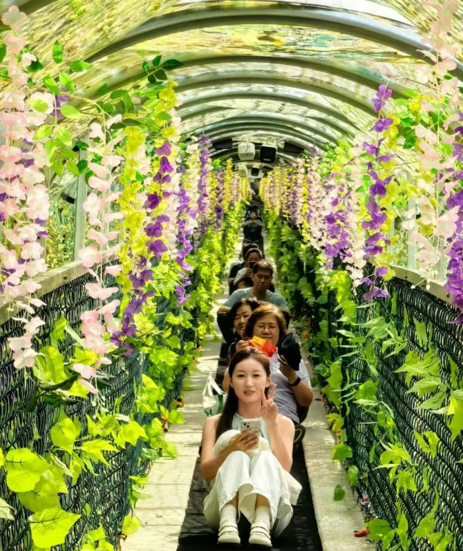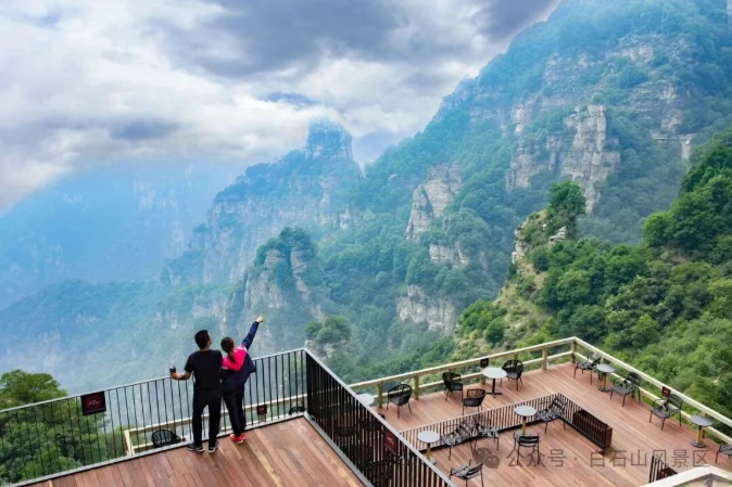 10月1日,白石山风景区装扮一新,处处洋溢着“中国红”,吸引游客前来打卡。图/白石山风景区微信公众号