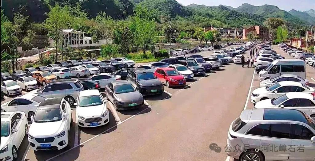 10月1日,石家庄的嶂石岩景区停车场停满了车辆。图/河北嶂石岩微信公众号