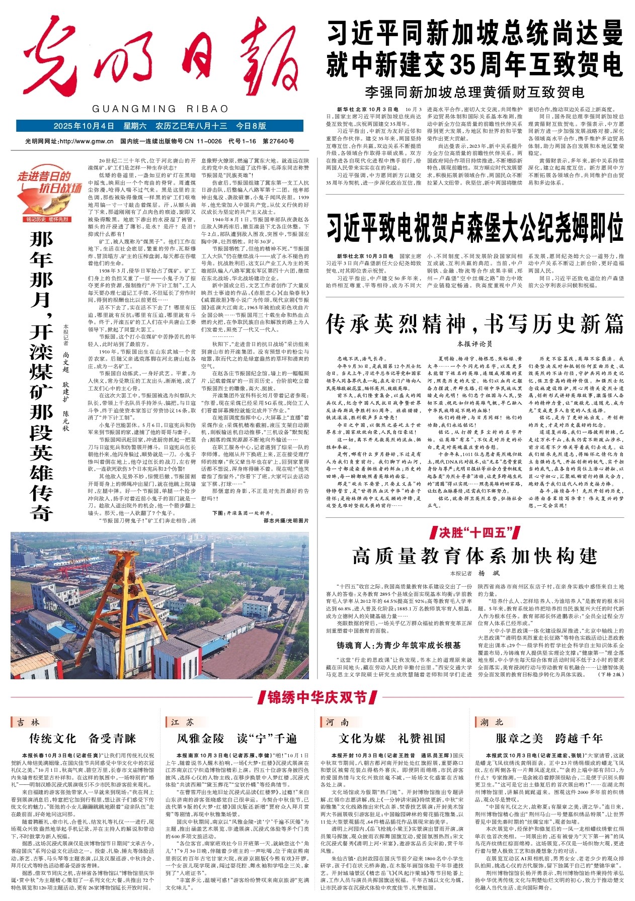 秋阳下,“走进昔日的抗日战场”采访组来到唐山市的开滦集团。没有预想中的粉尘与喧嚣,取而代之的是绿意盎然的草坪和清爽的空气。