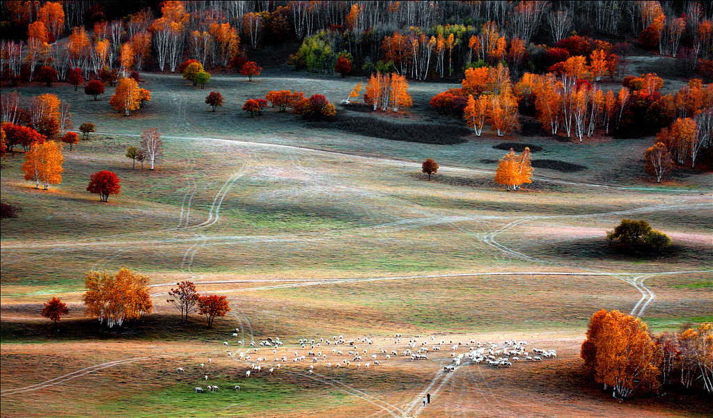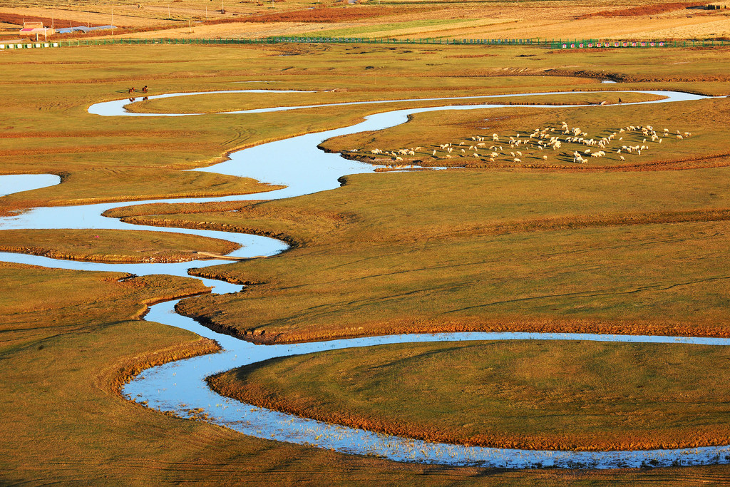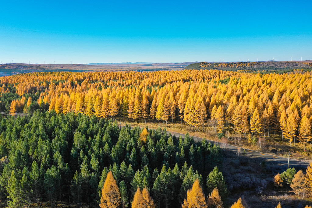 10月3日,在承德市围场满族蒙古族自治县坝上草原拍摄的秋景(无人机照片)。图源:北京日报客户端