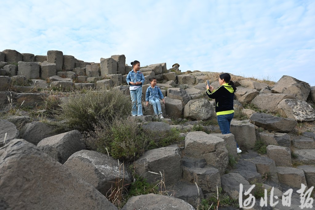 游客在台路沟玄武岩石柱群游玩。(河北日报资料片)河北日报记者郭晓通摄