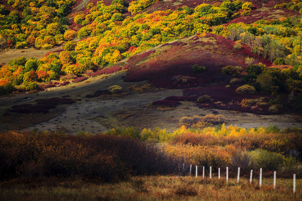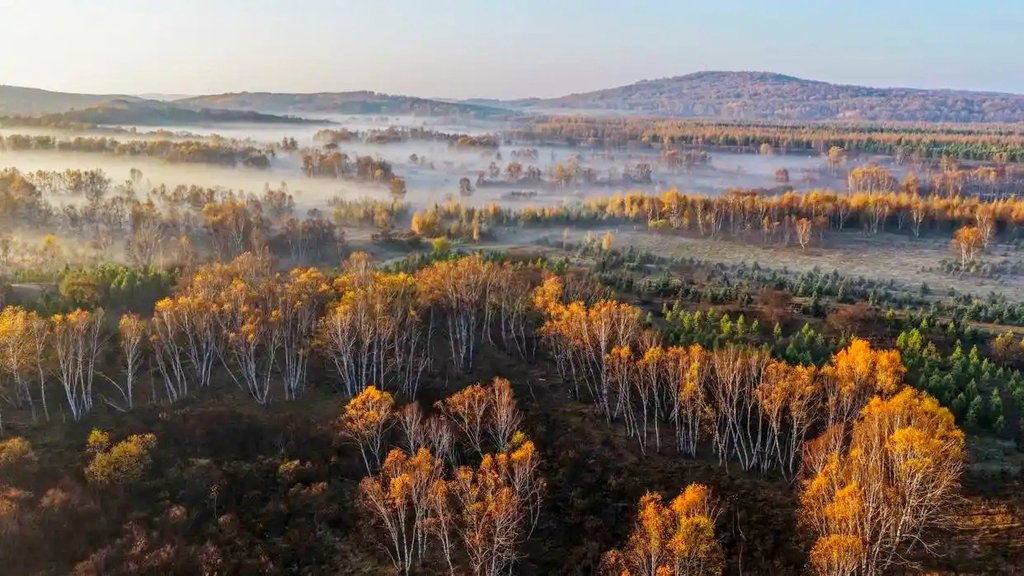 白桦林鎏金溢彩,与云杉的苍翠交织