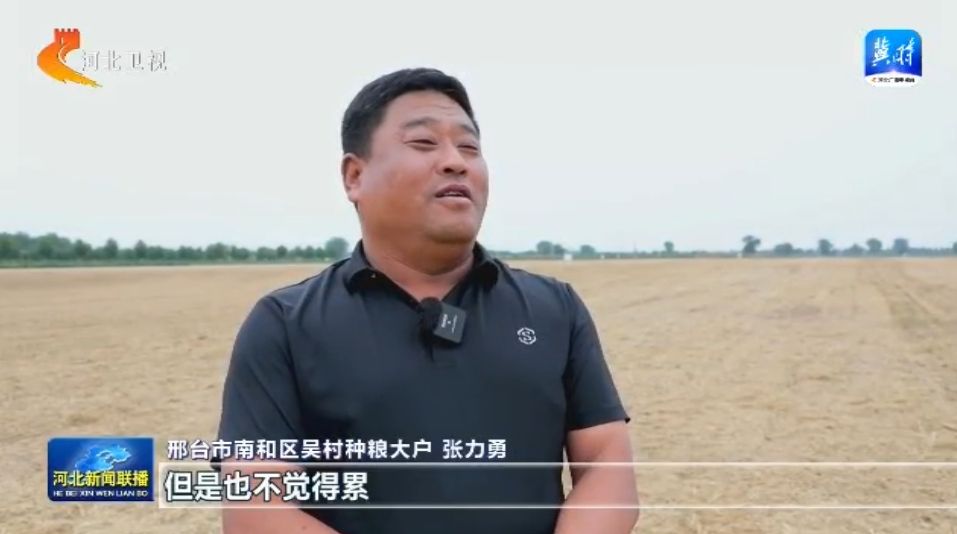 走进邢台市南和区吴村,成片连绵的谷浪随风起伏,种粮大户张力勇正开着收割机,在田间穿梭。