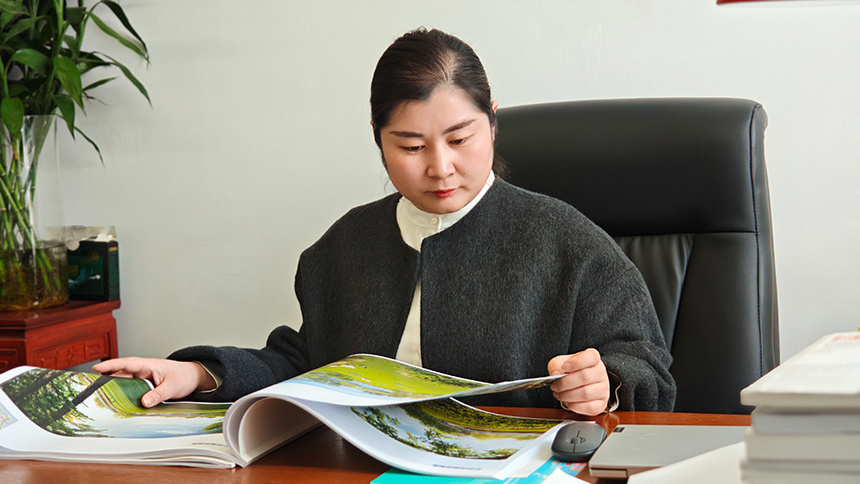 武芳芳翻看园林画册。雄安集团生态建设公司供图