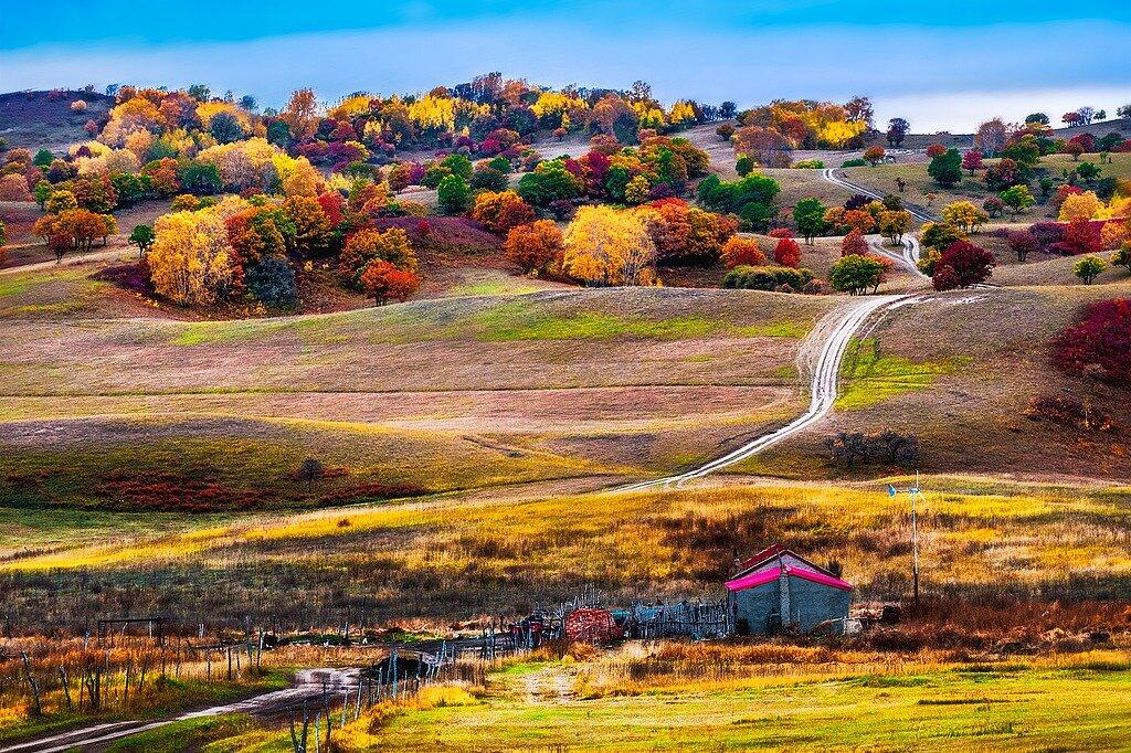 10月3日,在承德市围场满族蒙古族自治县坝上草原拍摄的秋景(无人机照片)。图片来源:北京日报客户端