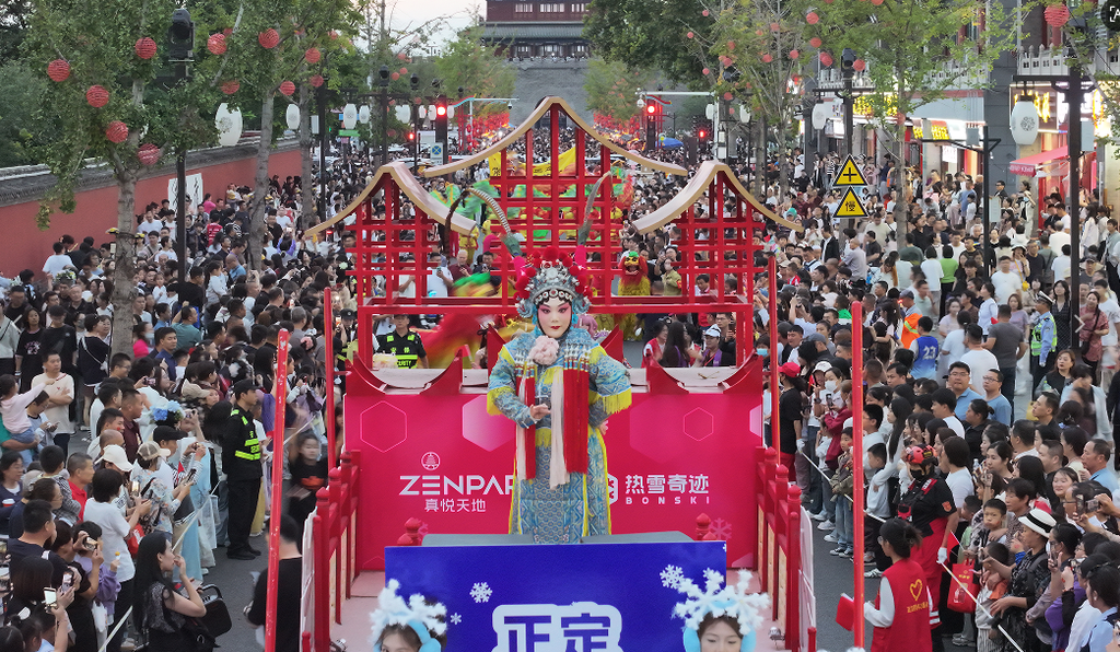 假期中,正定街道上挤满了游客。图片来源:正定发布