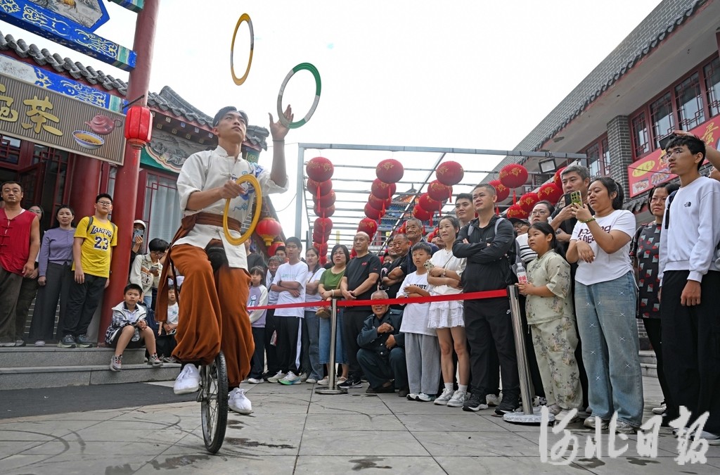 10月2日,吴桥杂技大世界景区举行九月庙会活动,杂技绝活、非遗展演轮番上演。河北日报记者 张 昊摄