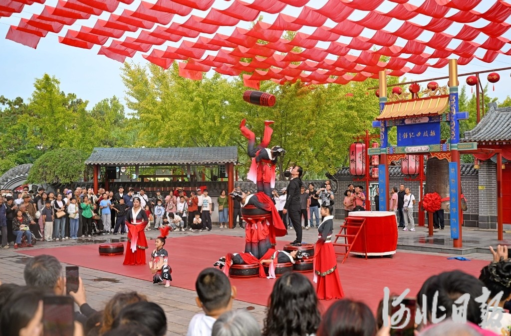 10月2日,吴桥杂技大世界景区举行“九月庙会”活动,杂技绝活、非遗展演轮番上演。河北日报记者 张昊摄