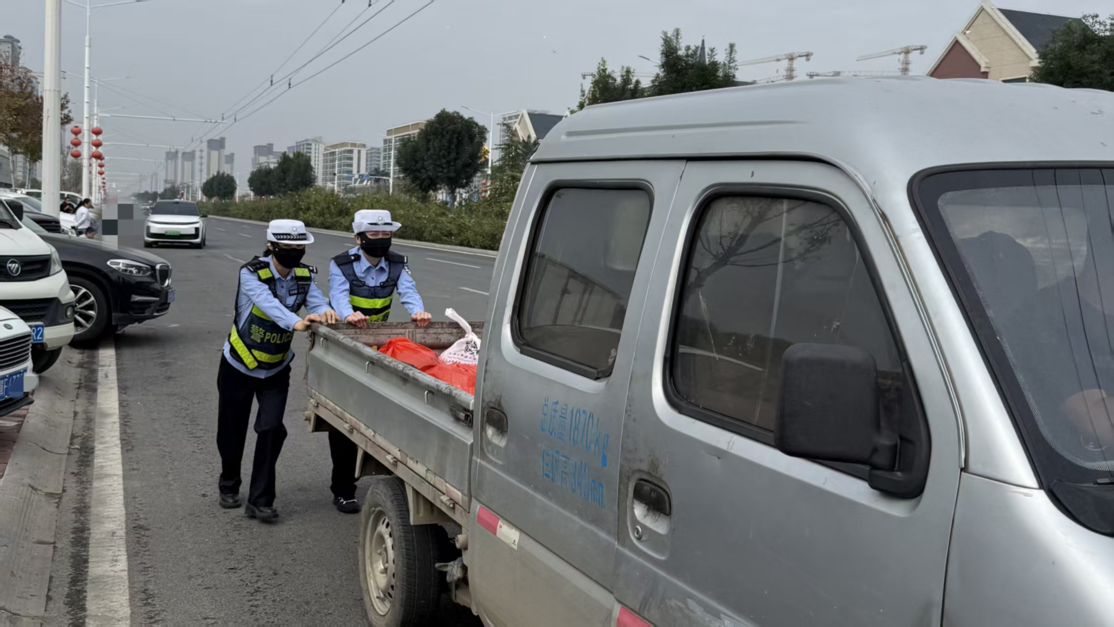 两位交警上前询问得知,车辆因电瓶亏电导致无法启动。面对这一突发状况,杨喆和刘玮迅速分工协作,一边疏导后方车辆有序行驶,一边帮助货车驾驶员将车辆推至安全区域。在几人的共同努力下,故障车辆被缓缓推动。幸运的是,在推行一段距离后,随着一阵引擎轰鸣,货车成功启动。