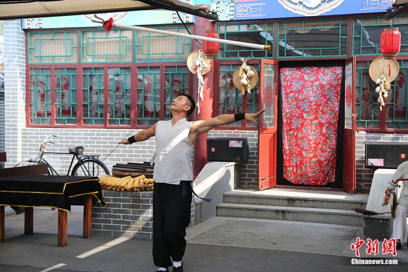 吴桥杂技艺人正在表演杂技。来源:中新视频小小铜锣圆悠悠