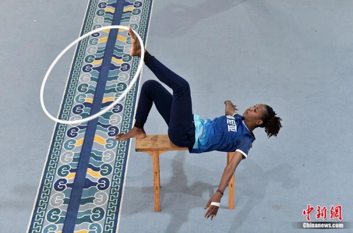 吴桥杂技艺人正在练习杂技。来源:中新视频
